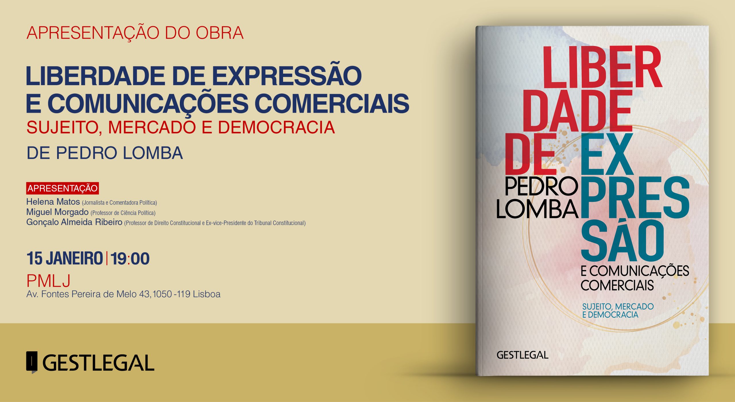 É com muito gosto que o convidamos para a apresentação pública, no próximo dia 15 de janeiro, pelas 19h00, na PLMJ , da obra “Liberdade de Expressão e Comunicações Comerciais”, da autoria de Pedro Lomba, Professor na Faculdade de Direito de Lisboa e sócio coordenador da área de Tecnologia, Media e Telecomunicações da PLMJ.